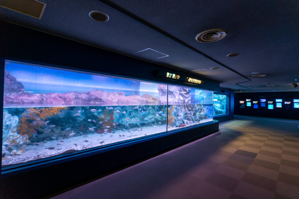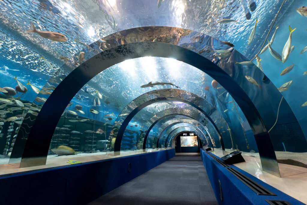 浅虫水族館のトンネル水槽。好きなトンネル水槽ベスト3に入ると思います。明るいし、