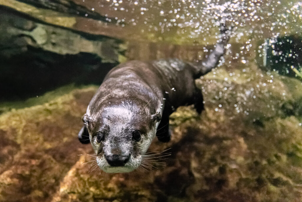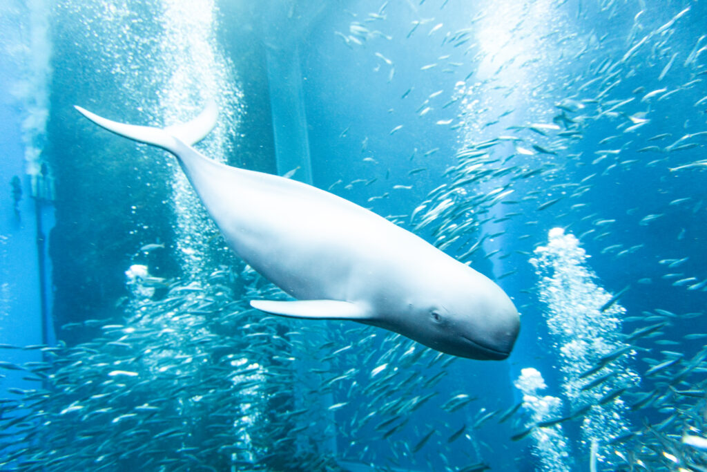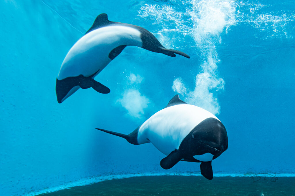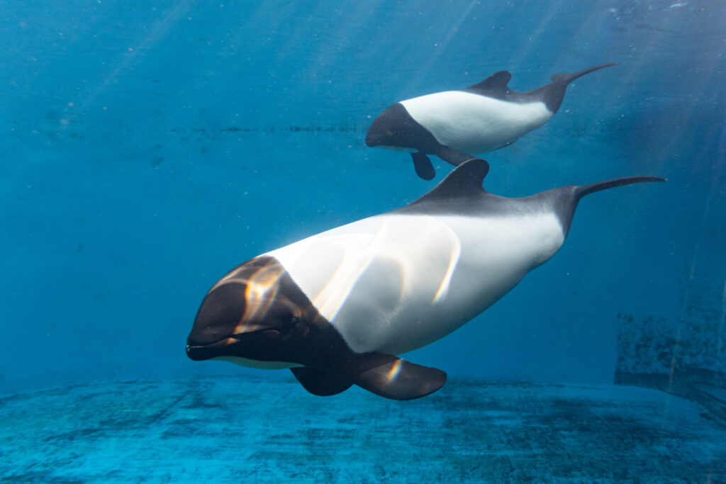 2階の「世界のうみ」エリアには、鳥羽水族館とここにしか展示されていないイロワケイルカがいます。