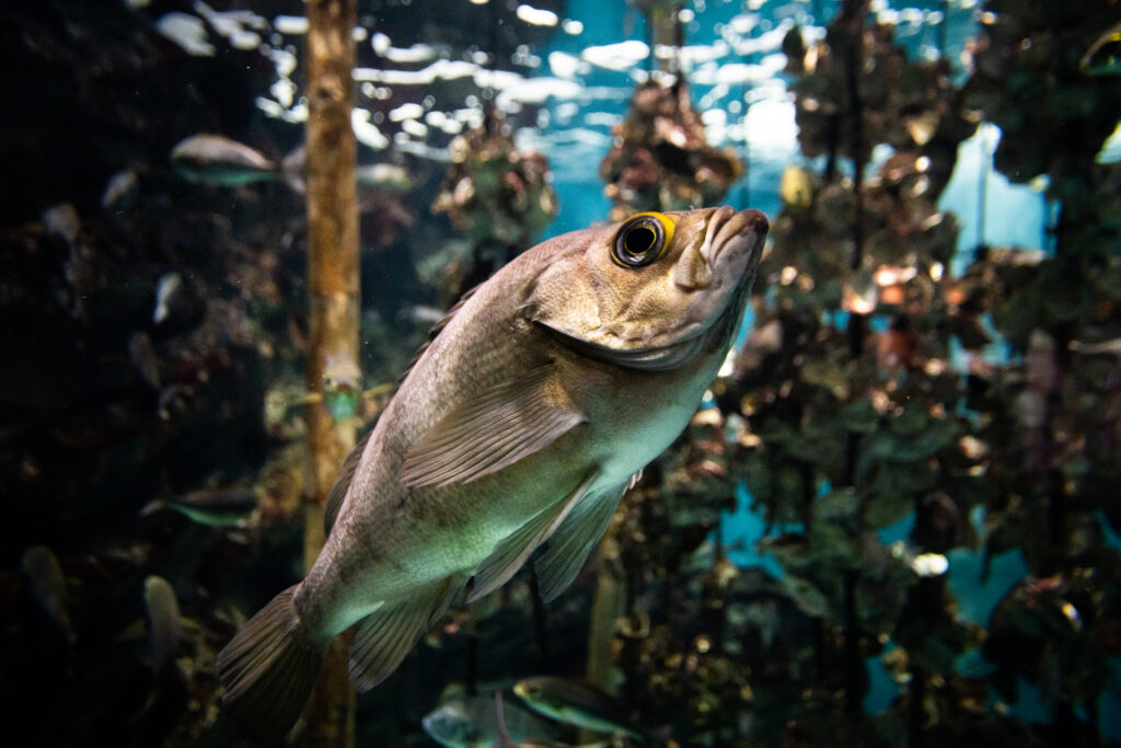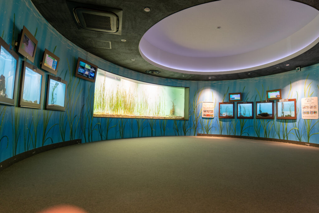 地元の魚の展示も充実。タイミングを選べば、他の水族館では珍客扱いのヨシキリザメを展示していることもあります。