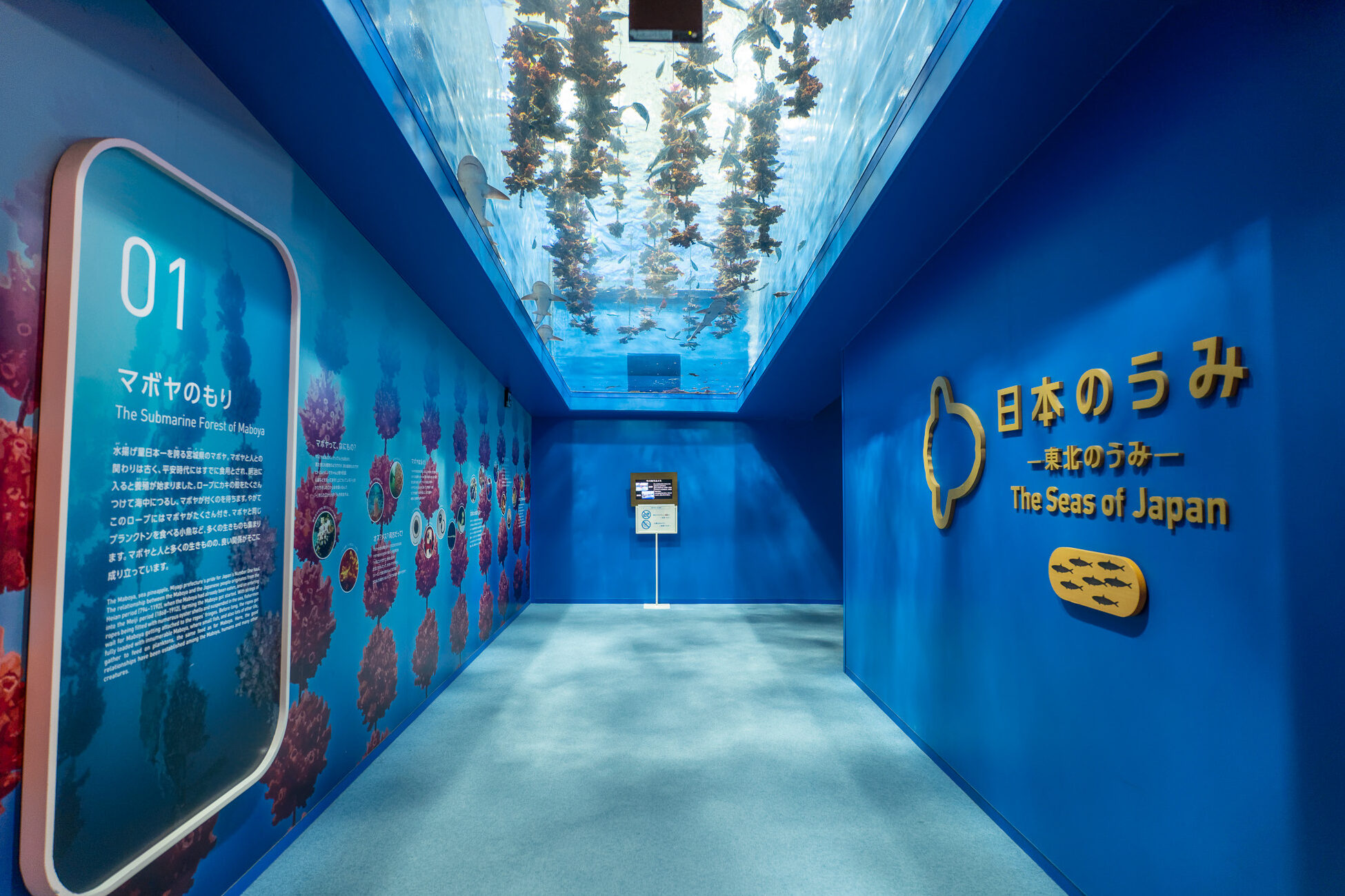 洋食の様子を再現した「マボヤのもり」を過ぎると、メインの大水槽「いのちきらめく うみ」があります。