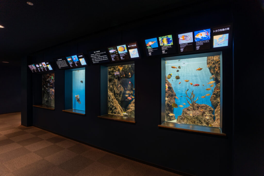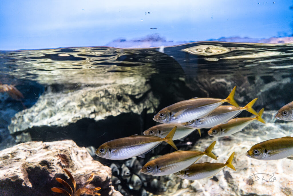冒頭のオレンジの背景が印象的な沿岸水槽の写真はたくさんネットに転がっていますが、実は時間経過で昼の青色だったり夕方のオレンジだったりします。