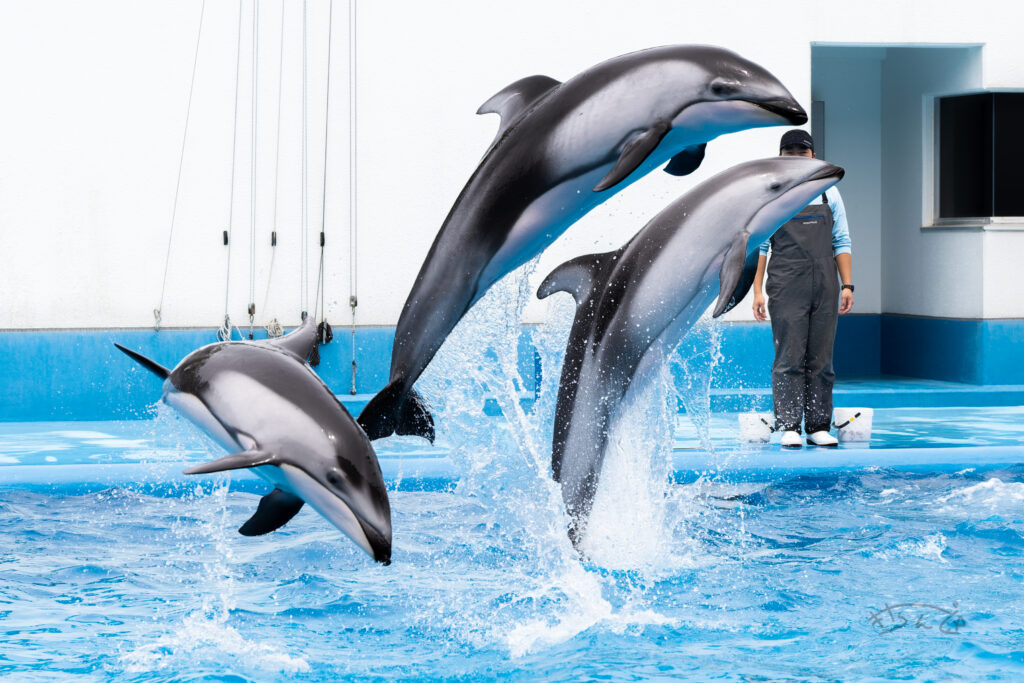 ジャンプの回数も多く、カメラ好きも大満足です。ショーの後にはプール傍で質問コーナーが設置されており、なんかいいなあと思いました。