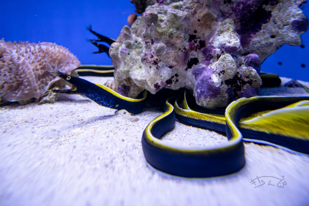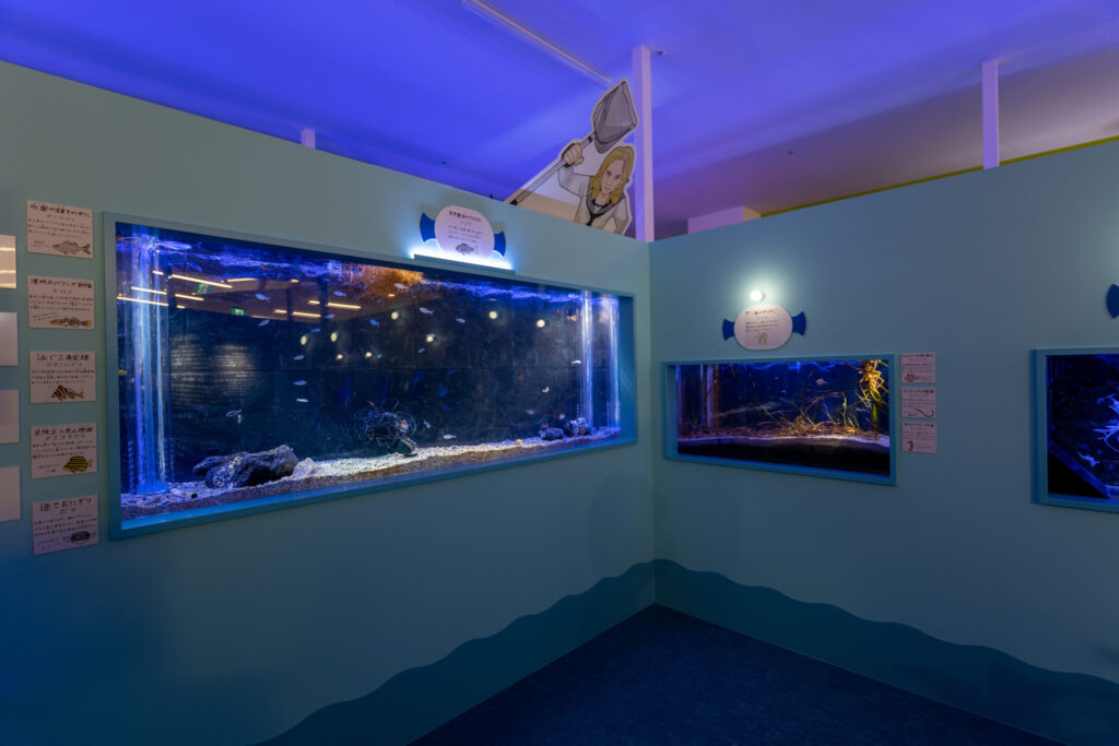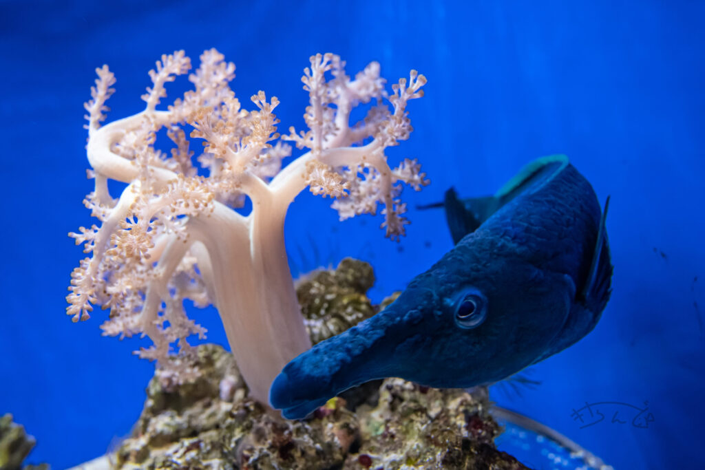 大部分の水槽が青バックの青照明で、撮影(というかカメラの設定)はなかなか難しめです。