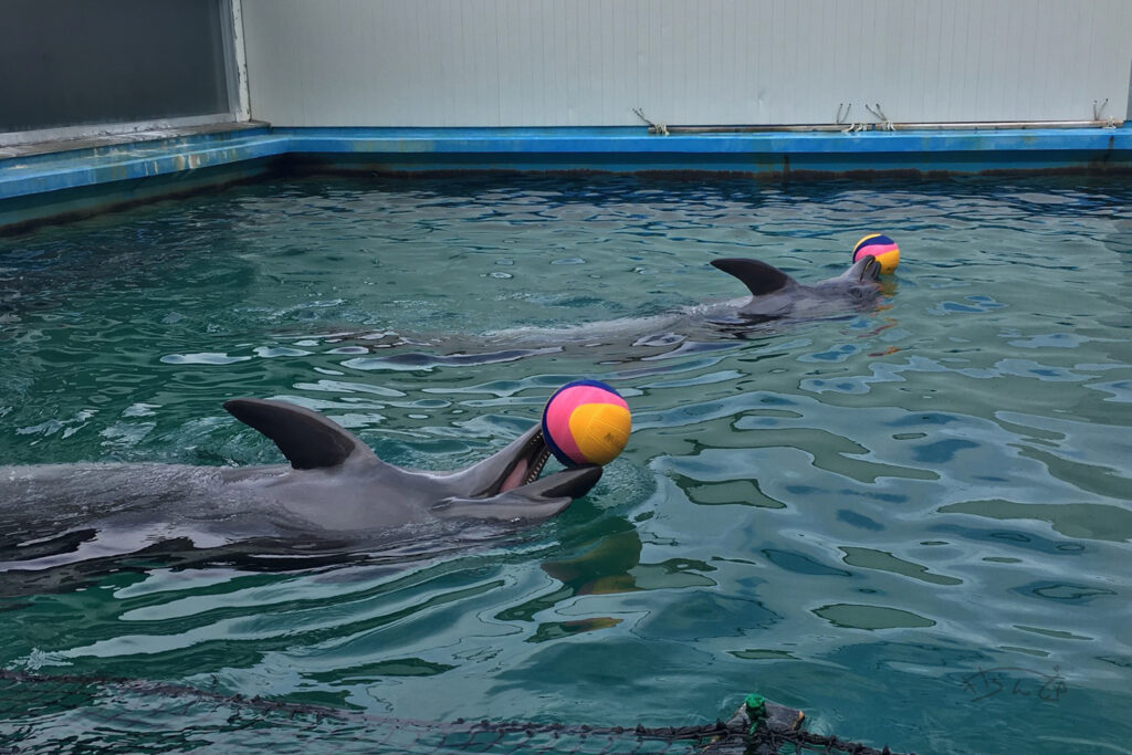 イルカとキャッチボールができます。なにやら好きな投げ方があるのか、投げ方が上手い人のところにボールを投げ返してきます。自分は・・・写真撮りたいから自分のところには投げて欲しくないのに、他の人が投げたボールも自分のところに投げ返され、カメラを片手にキャッチボールする羽目になりました。水飛沫が怖すぎです、マジでカメラ壊れる(((