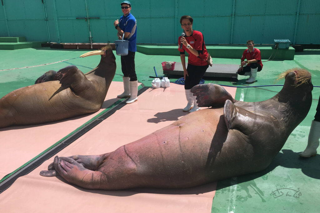 セイウチのショーが有名です。腹筋をしたり、根性注入としてケツを引っ叩いてくれるんですが、そんなことより、ブログ用に写真を載せるにあたって、顔を加工しようとして生成AIを当てたら謎のイケメンが出てきて爆笑しました。こっちみんな。