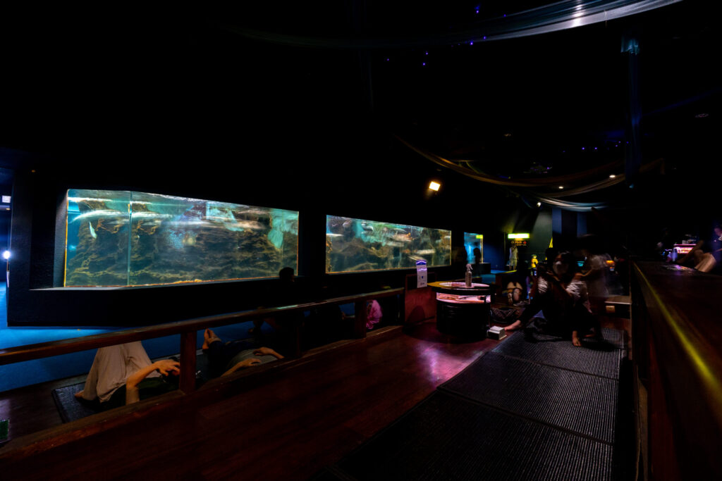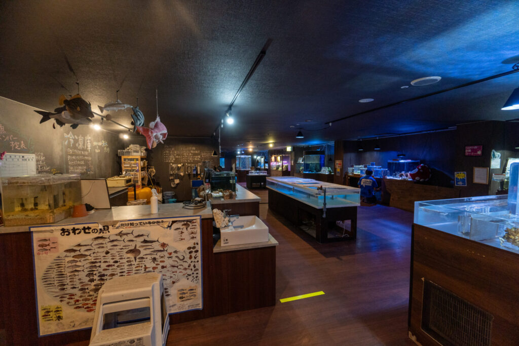 日本三大チル・エリアの一角です。ここで水槽を見ながらぼーっとしているだけで無限に時間が溶けます。あと二つは、あわしまマリンパークの大水槽と、京急油壺マリンパークのドーナツ水槽です(きさらんど調べ)