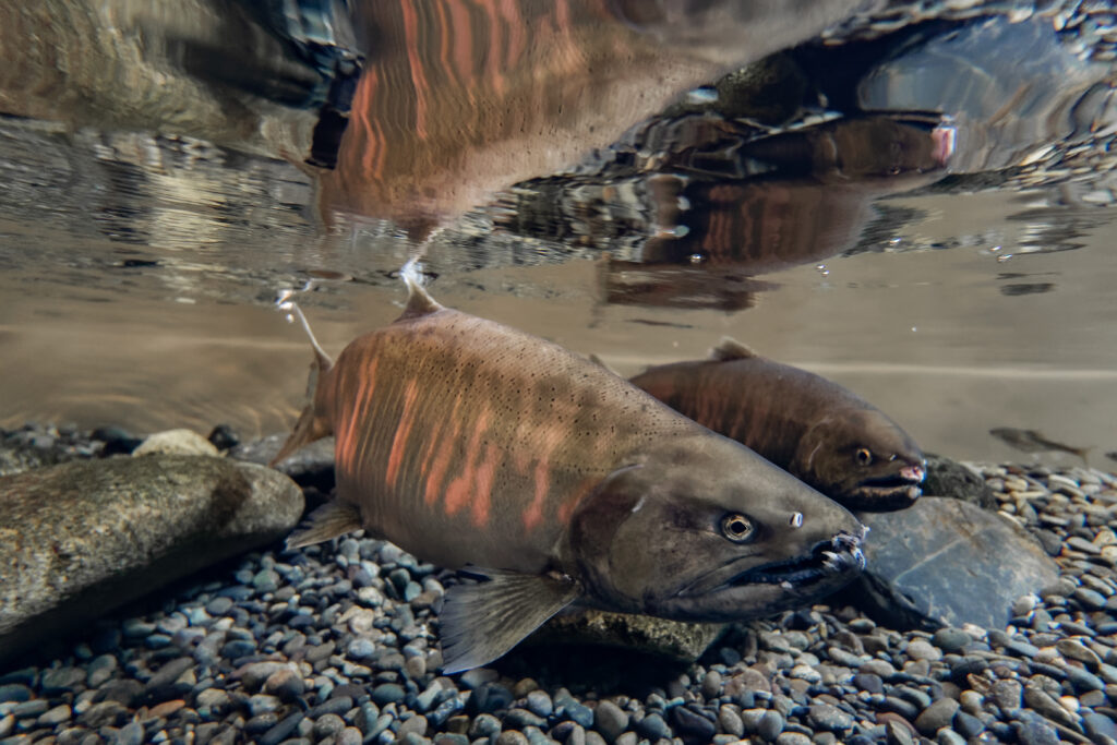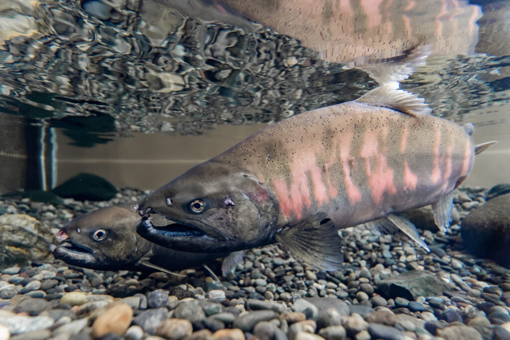 ビワマスは秋になると琵琶湖からその流入河川へ遡上します。