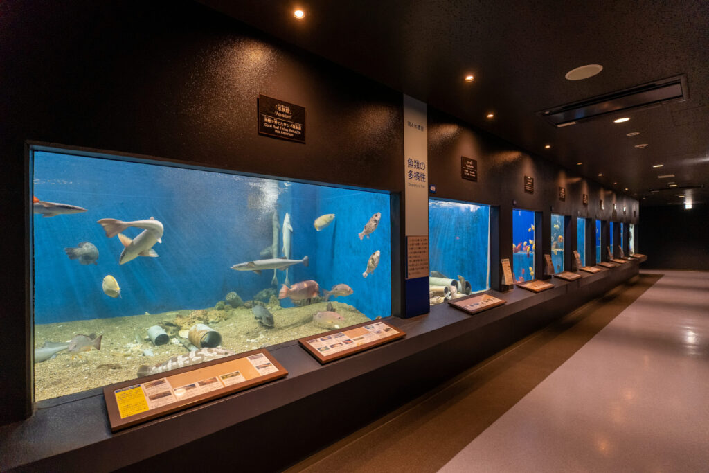 ナマコだけの水槽・・・!しかも水槽の一つ一つに丁寧な解説付きで時間が溶けます。