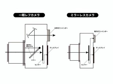 ・ミラーレスはセンサーに映った光景をファインダー(という名の小さいモニター)に表示させている