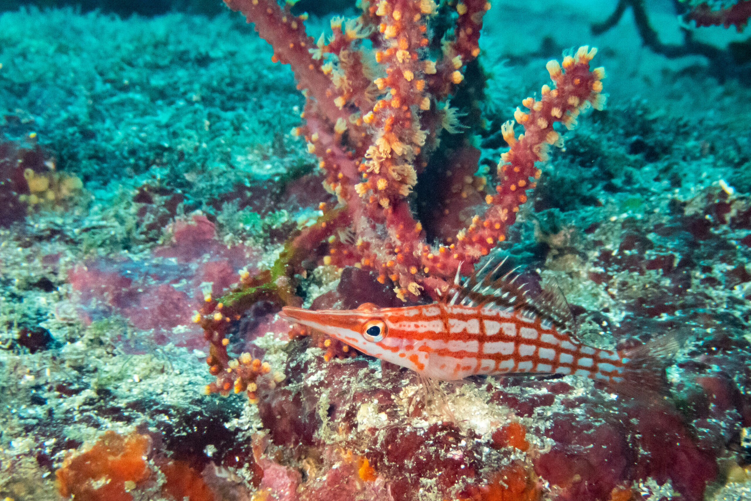 コツは、iso感度を低めにして、その分シャッタースピードが落ちてしまうので手ブレしないようにカメラをしっかり固定することです。私はハウジングのシューベースにライトを固定して両手でカメラを構えていましたが、そこら辺は工夫してみてください。