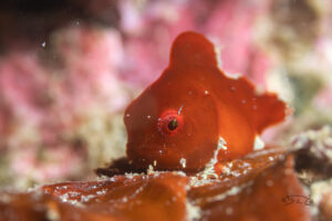 マクロ好きダイバーの人気種、ダンゴウオです。 海藻が揺れて撮りづらいです・・・。