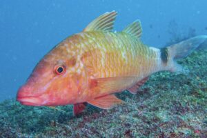 よく似ているオキナヒメジとは、尾びれの付け根の黒い模様が側線を越えていることで見分けるそうです。