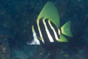 深場から上がってくる最中に-30mくらいで見かけました。いつもヒレが全開。こういう魚は好きです。