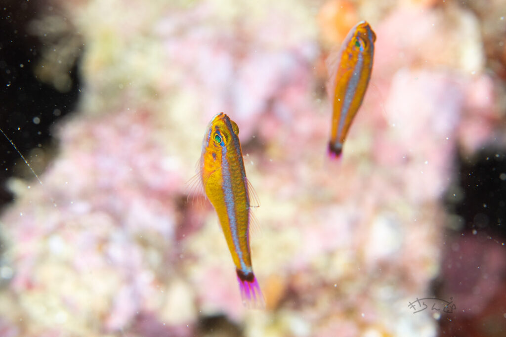 壁に沿うように、縦向きになって泳いでいることが多いハゼです。伊豆にはいない魚かつ水族館でよく見る魚なので、初めて見た時は感動しました。