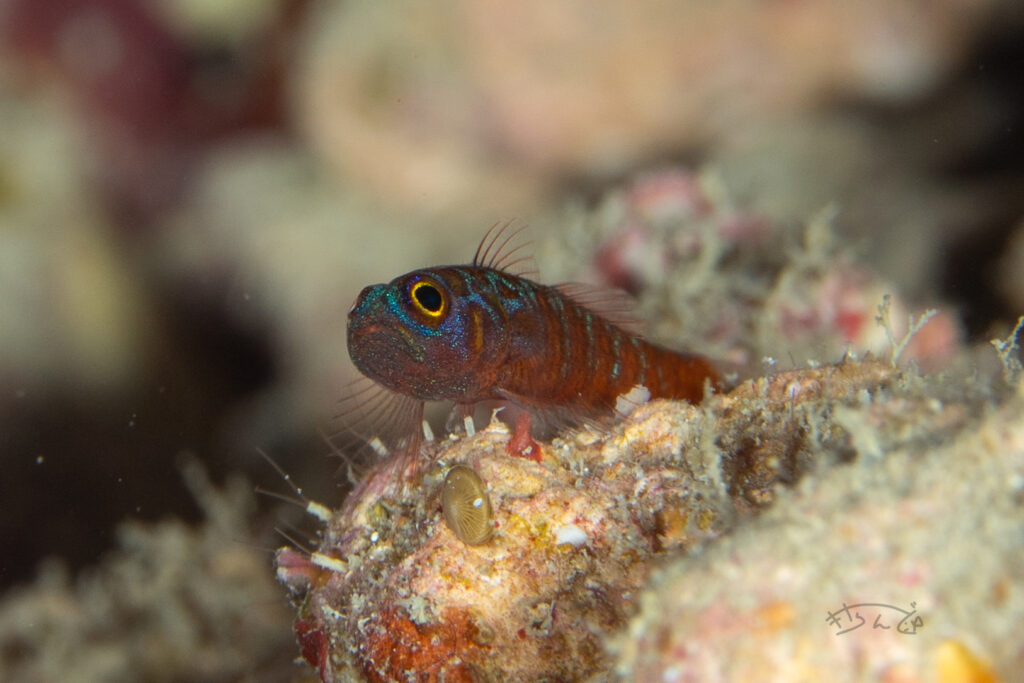 頭が青いのが特徴のベニハゼです。岩の隙間にいて撮りづらかったです。出てきてくれ。