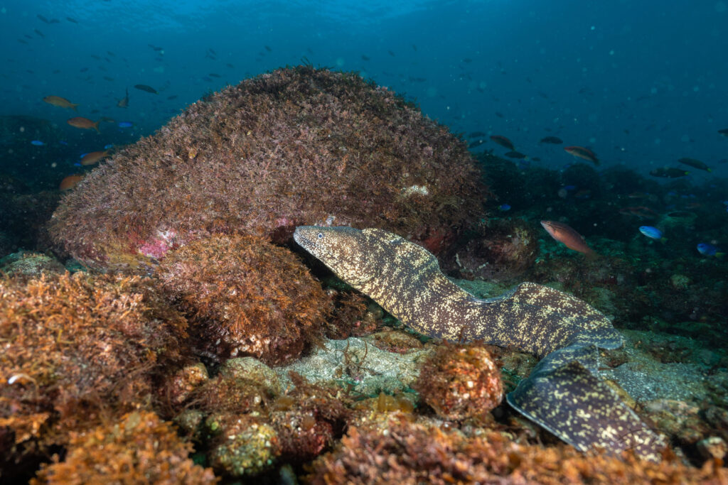 ウツボ 2025年11月28日 最終更新日時 : 2026年1月18日 きさらんど 2026.01 ウツボです。浅いところから深いところまで、岩礁だろうが砂地だろうがいます。 2020.05 葉山 鼻毛が気になります。 2021.02 伊東 食べると美味しいです。 X