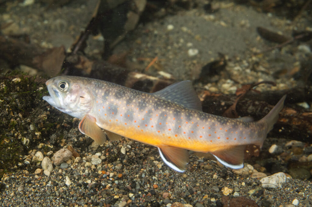 赤い斑点模様がかっこいい、北海道固有のイワナの仲間です。