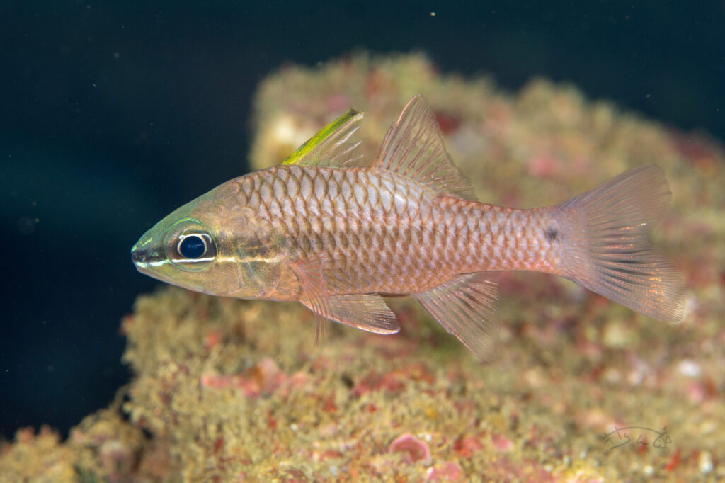 背びれの前方だけ黄色いテンジクダイです。わかりやすいと言えばわかりやすいです。