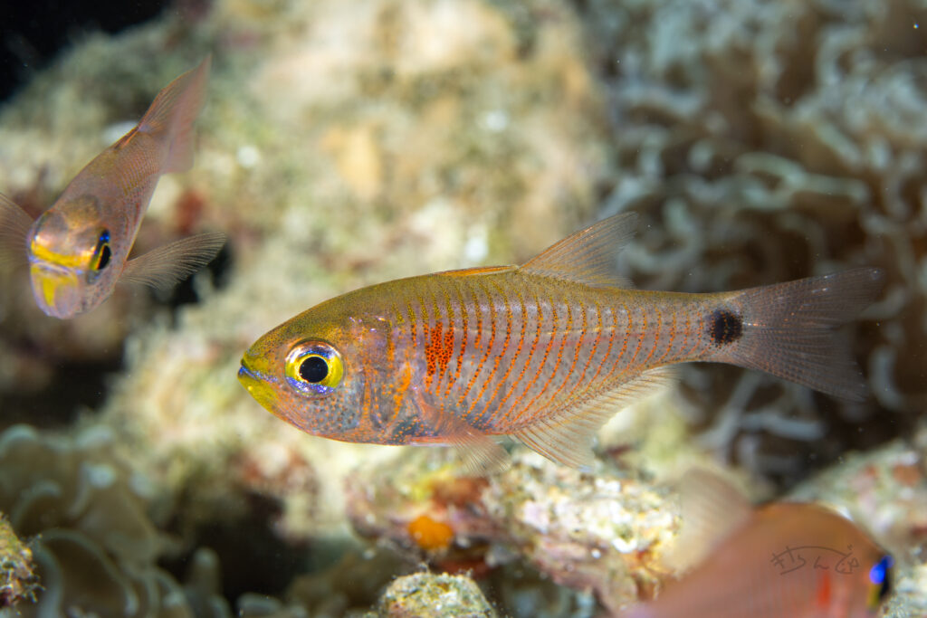 スミツキアトヒキテンジクダイ 2025年9月25日 最終更新日時 : 2025年9月25日 きさらんど 2025.02 小笠原 水中でコイツ見たときに 「あ!スミツキアトヒキテンジクダイだ!」 って言えるでしょうか。僕は言えません。小笠原で取り敢えず目に入った魚を撮った中に入ってました。 FacebookXBlueskyHatenaCopy