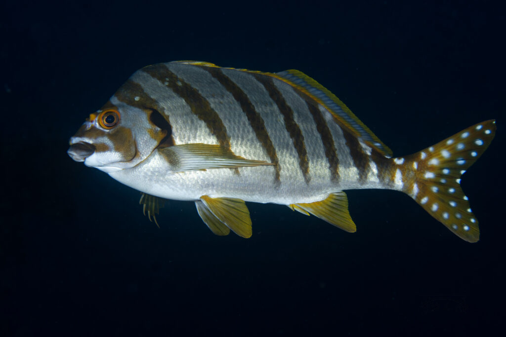 タカノハダイ 2025年9月25日 最終更新日時 : 2025年9月25日 きさらんど 2025.01 大瀬崎 ちょいちょいみるけど撮らない魚ランキングの割と上位。いつもごめんね。 FacebookXBlueskyHatenaCopy
