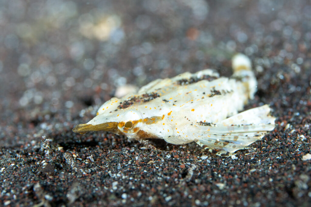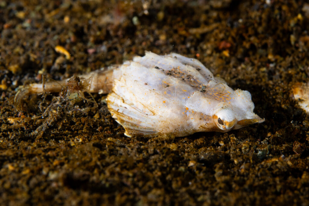 前に撮影していたダイバーの去り際のフィンキックで宙に舞い上がっていました。かわいそうに・・・笑