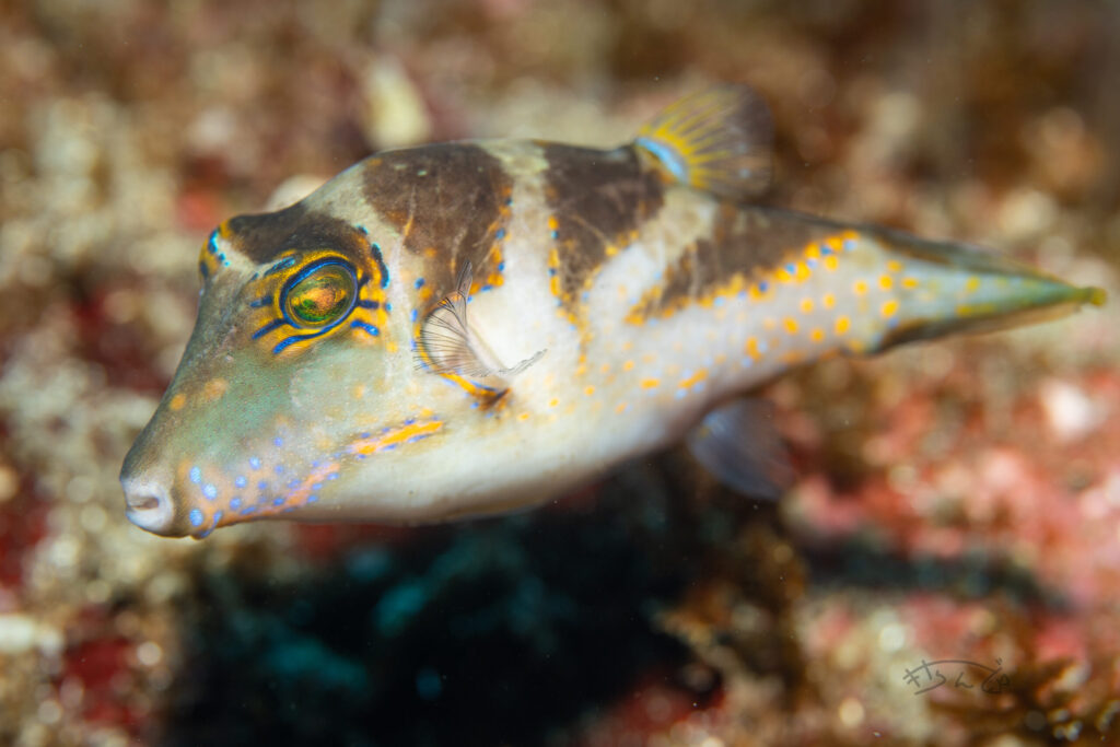 ハナキンチャクフグ 2025年10月6日 最終更新日時 : 2026年3月7日 きさらんど シマキンチャクフグとは、背中の黒い模様が黄色く縁取られていることで見分けられます。 2024.07 坂田 キタマクラよりはちょっとレア、くらいのイメージです。 X