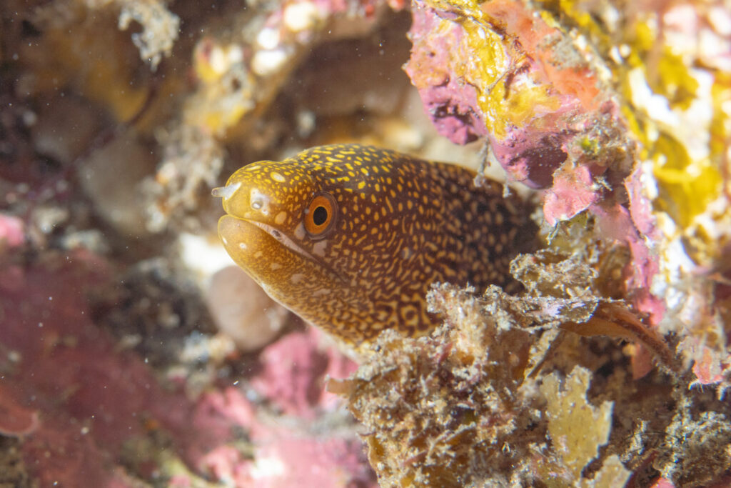 ストロボが片方しか光らなかったのを無理やり誤魔化しました。細めのウツボです。